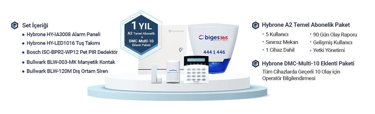 - Akıllı Network+4G Hırsız Alarm Seti+1 Yıl Hybrone A2 Temel Paket + DMC Multi 10